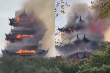 Tragic moment huge blaze engulfs temple as ‘irresponsible’ tourist is blamed