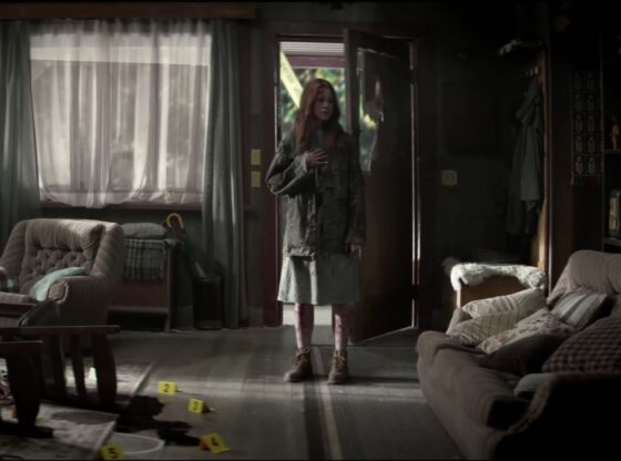 While sporting the iconic Pin-Up Girl mask, Maya appears standing at a crime scene alongside the other masked Strangers, Dollface, and Scarecrow. After Maya kills the original Pin-Up Girl in self-defense earlier in Chapter 2, this shot suggests a terrifying path for the franchise’s conclusion. It implies that Maya may have been physically brainwashed into joining the ritualistic cult, in addition to having suffered a severe psychological breakdown.